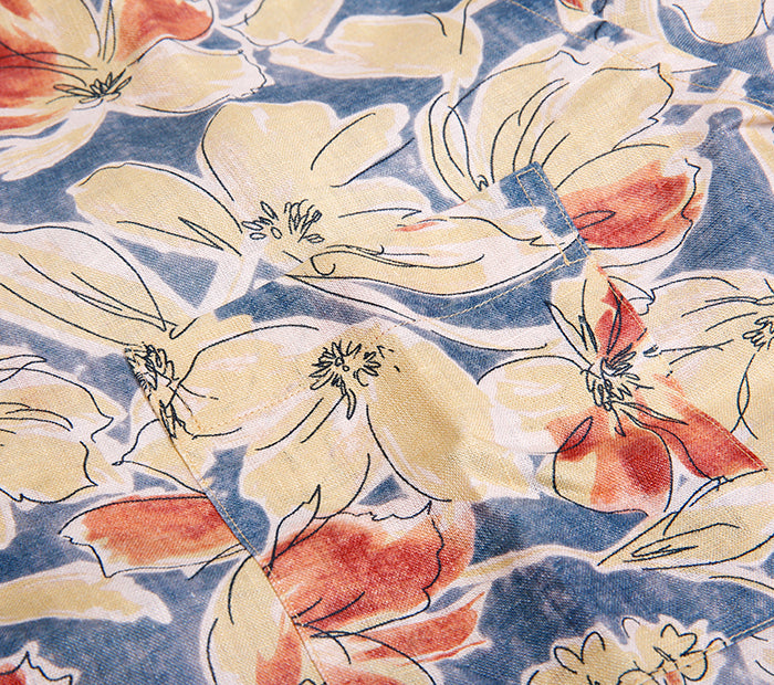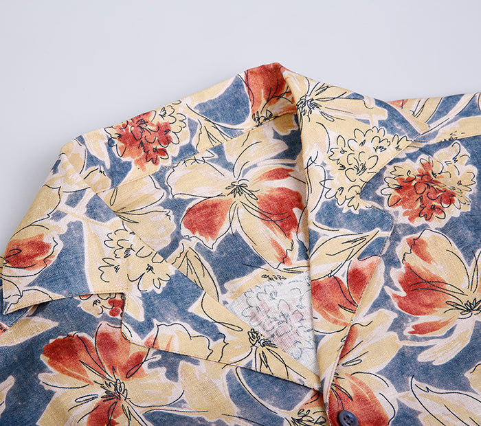 This classic floral print linen shirt blends vintage charm with modern comfort. Crafted from 100% breathable linen, it offers a lightweight and airy feel, perfect for warm weather. The long-sleeve design and elegant Cuban collar enhance its timeless appeal, making it a versatile choice for casual and refined occasions.