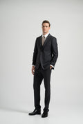 A timeless three-piece wool suit designed for modern gentlemen. Crafted from 100% pure wool, this suit ensures both comfort and structure, making it an essential choice for business and formal occasions.