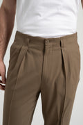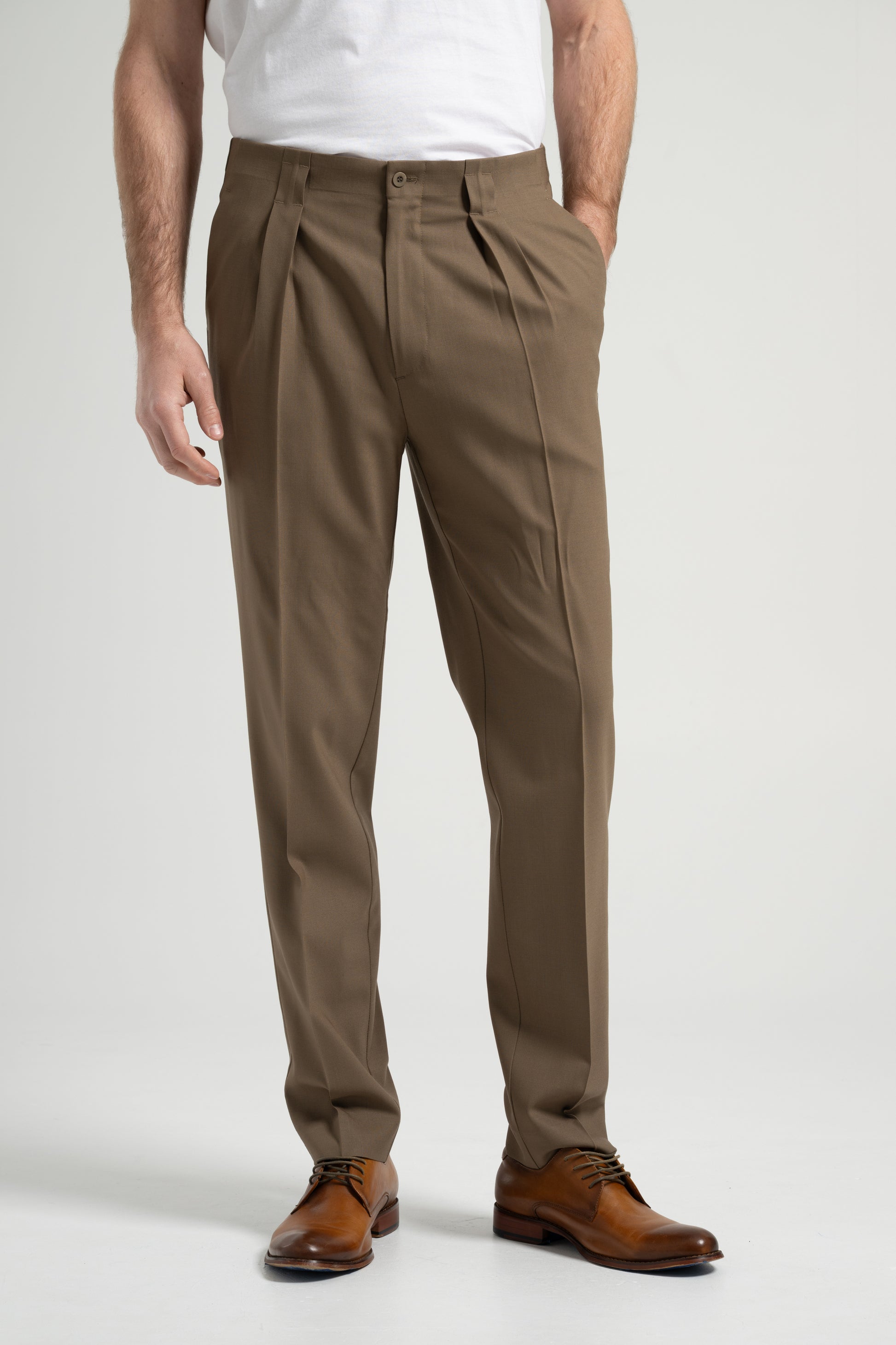 Crafted from luxurious wool stretch fabric, double-pleat trousers offer exceptional warmth, flexibility, and refined texture. Seamless waistband design ensures a sleek, polished look, ideal for both formal and business-casual settings. Tailored for comfort and style, presenting a sophisticated silhouette with versatile appeal.