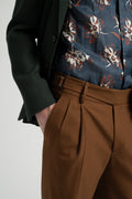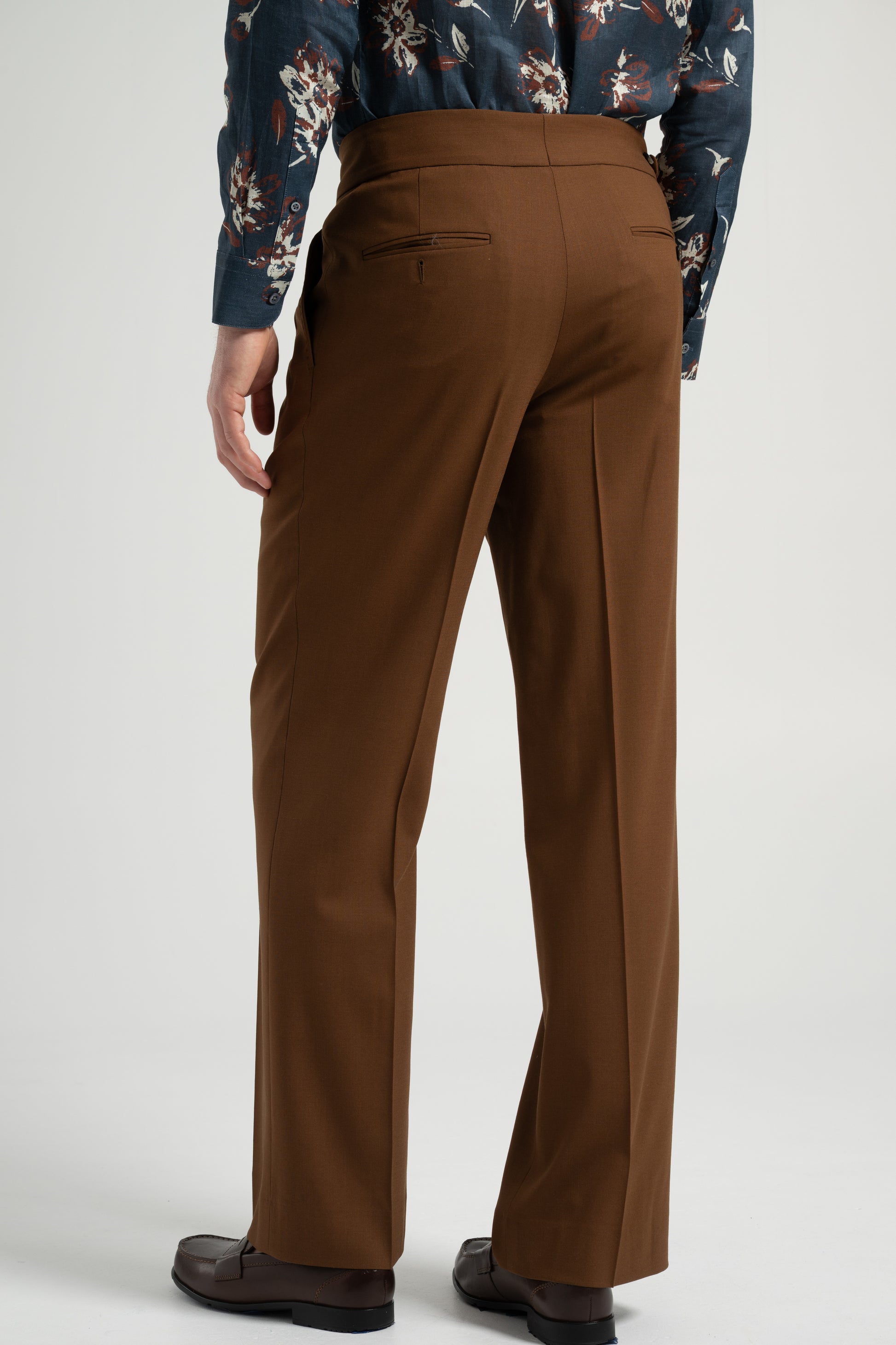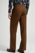 These high-waisted wool flared trousers combine retro elegance with modern tailoring. Crafted from premium wool, they provide structure and a fluid drape, enhancing the silhouette. The wide-leg cut elongates the legs, while the side-adjustable waistband ensures a perfect fit. Ideal for refined everyday styling or sophisticated occasions.
