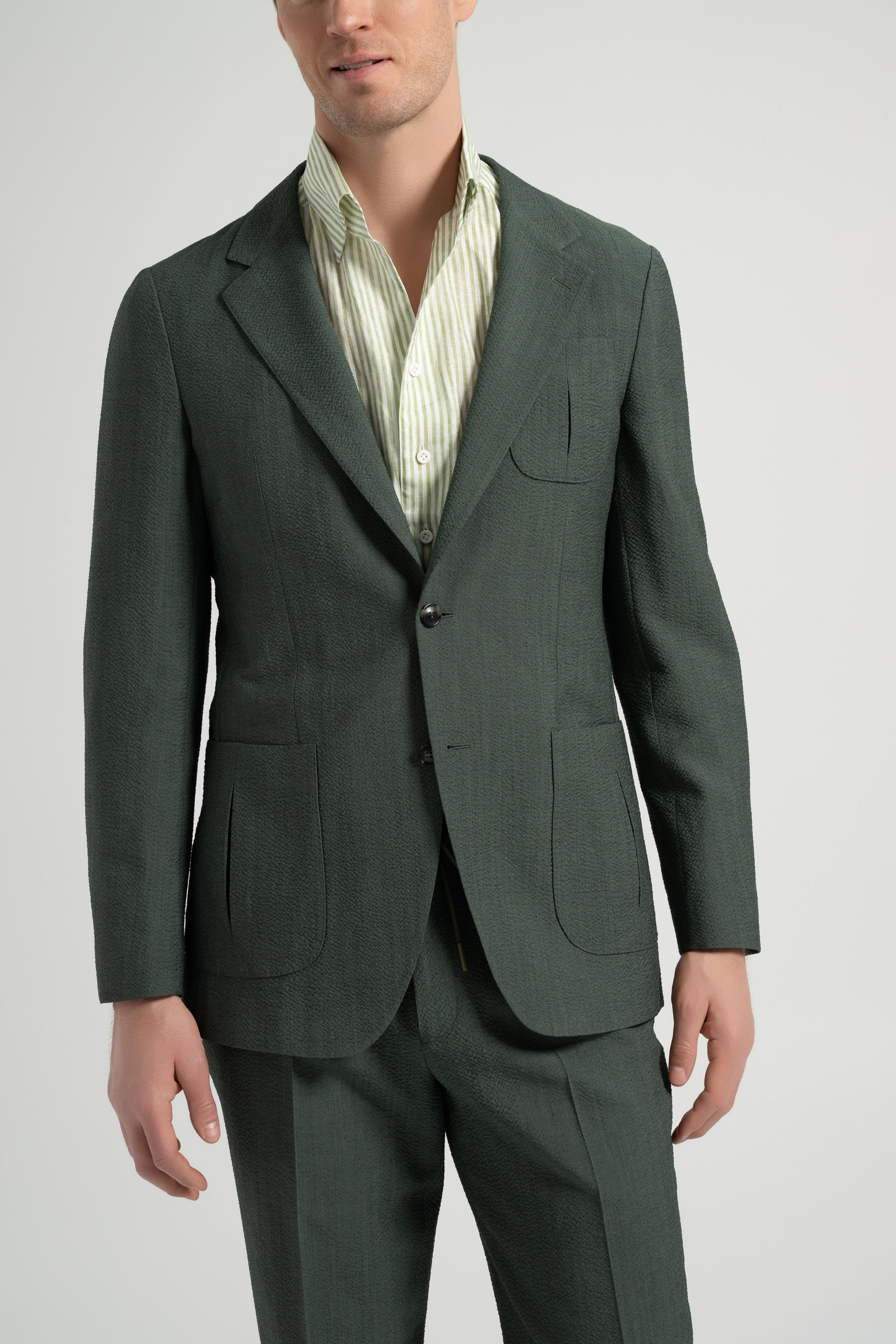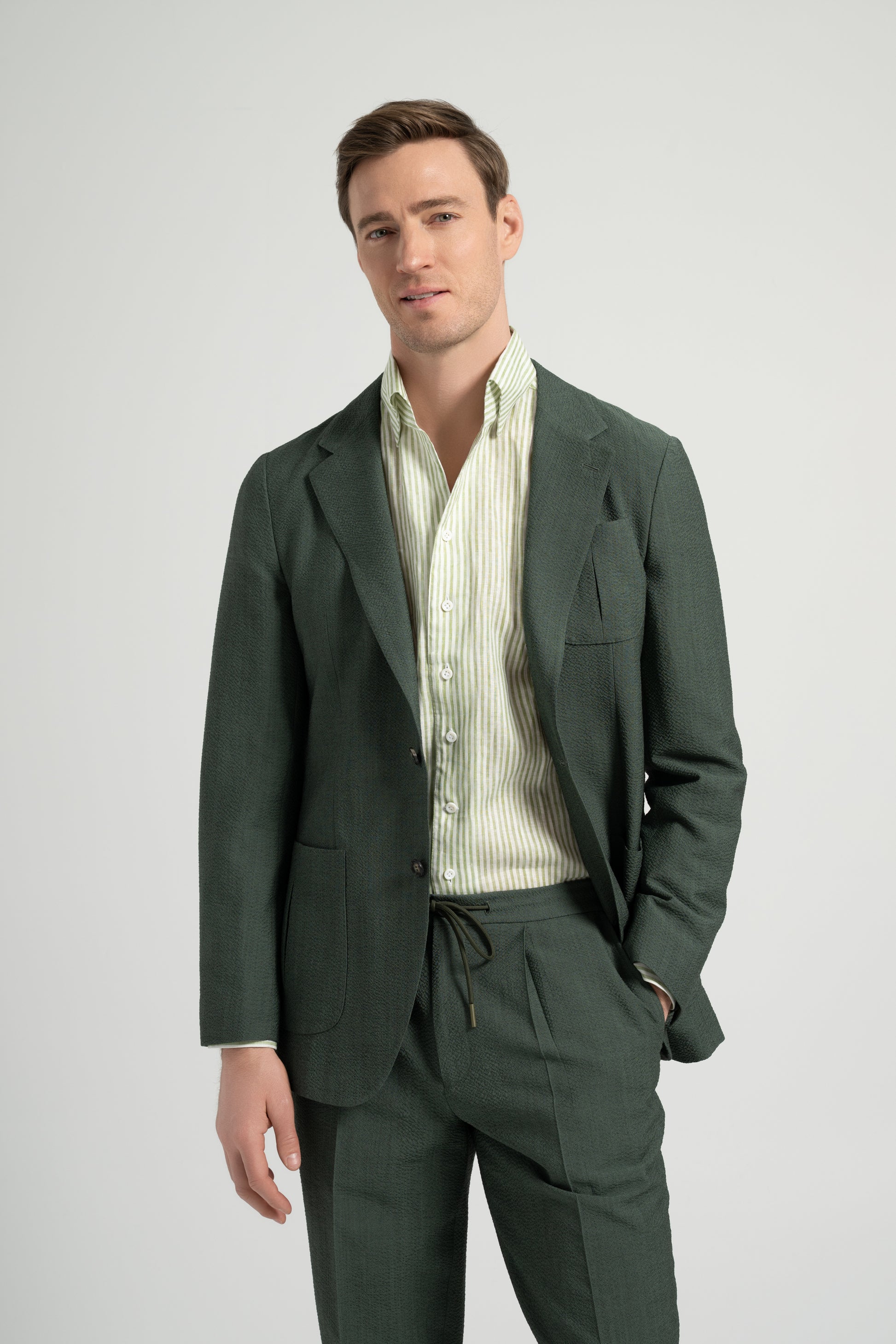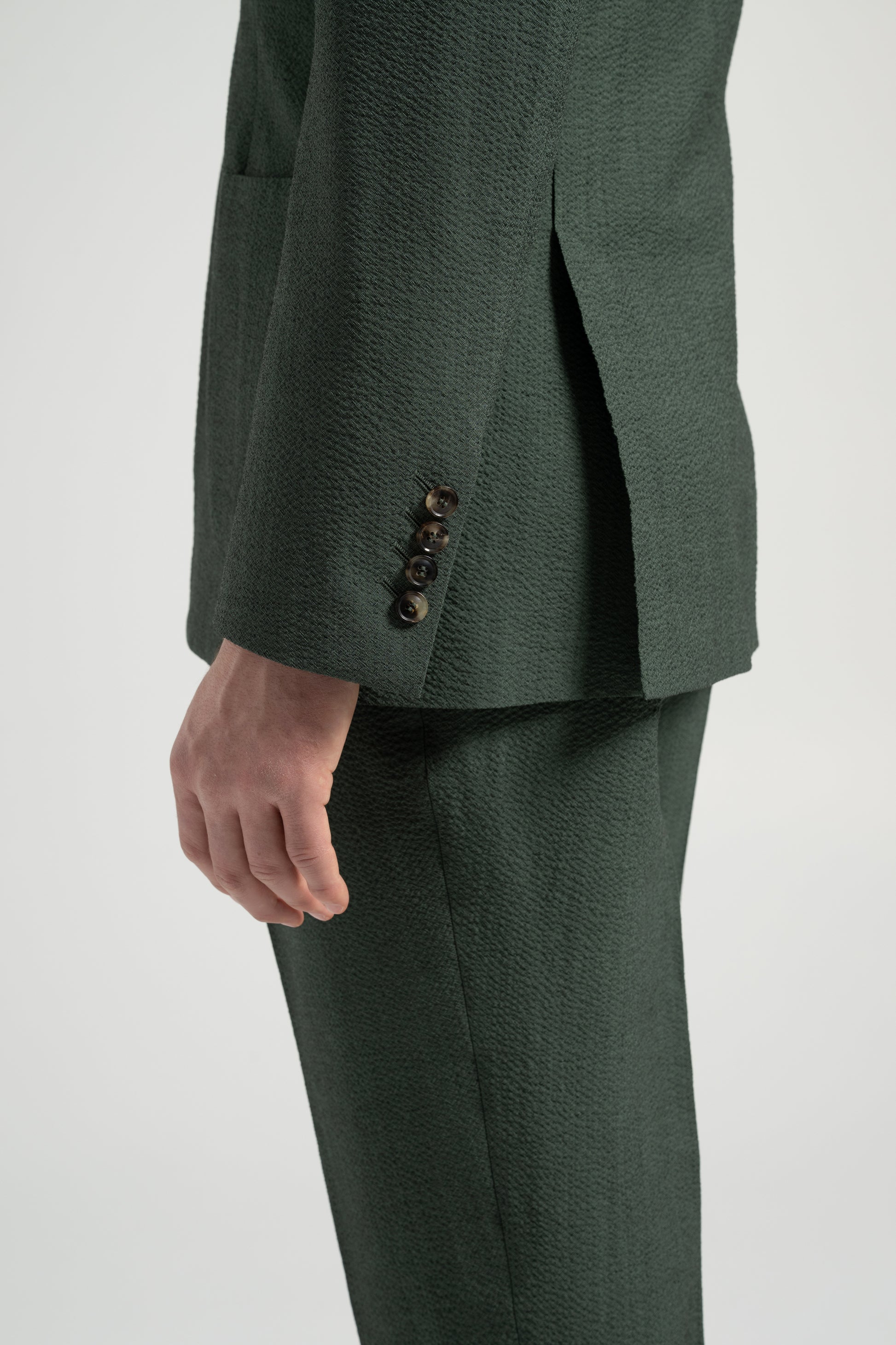A refined two-piece suit designed for effortless elegance. The structured blazer features classic notch lapels and practical patch pockets, while the tapered trousers ensure a sharp silhouette. Made from breathable, high-quality fabric, it's perfect for both formal occasions and sophisticated everyday wear.