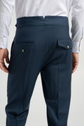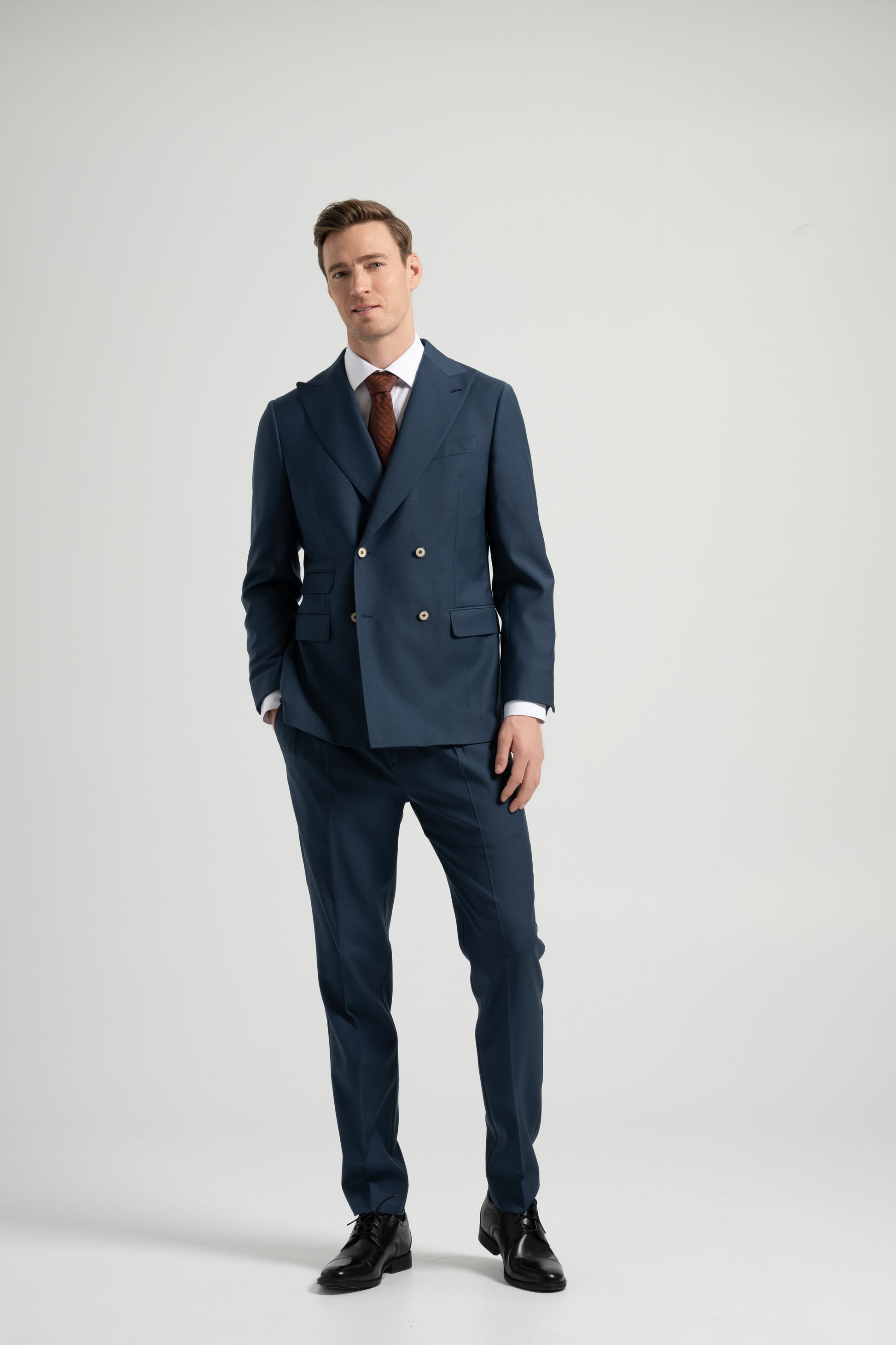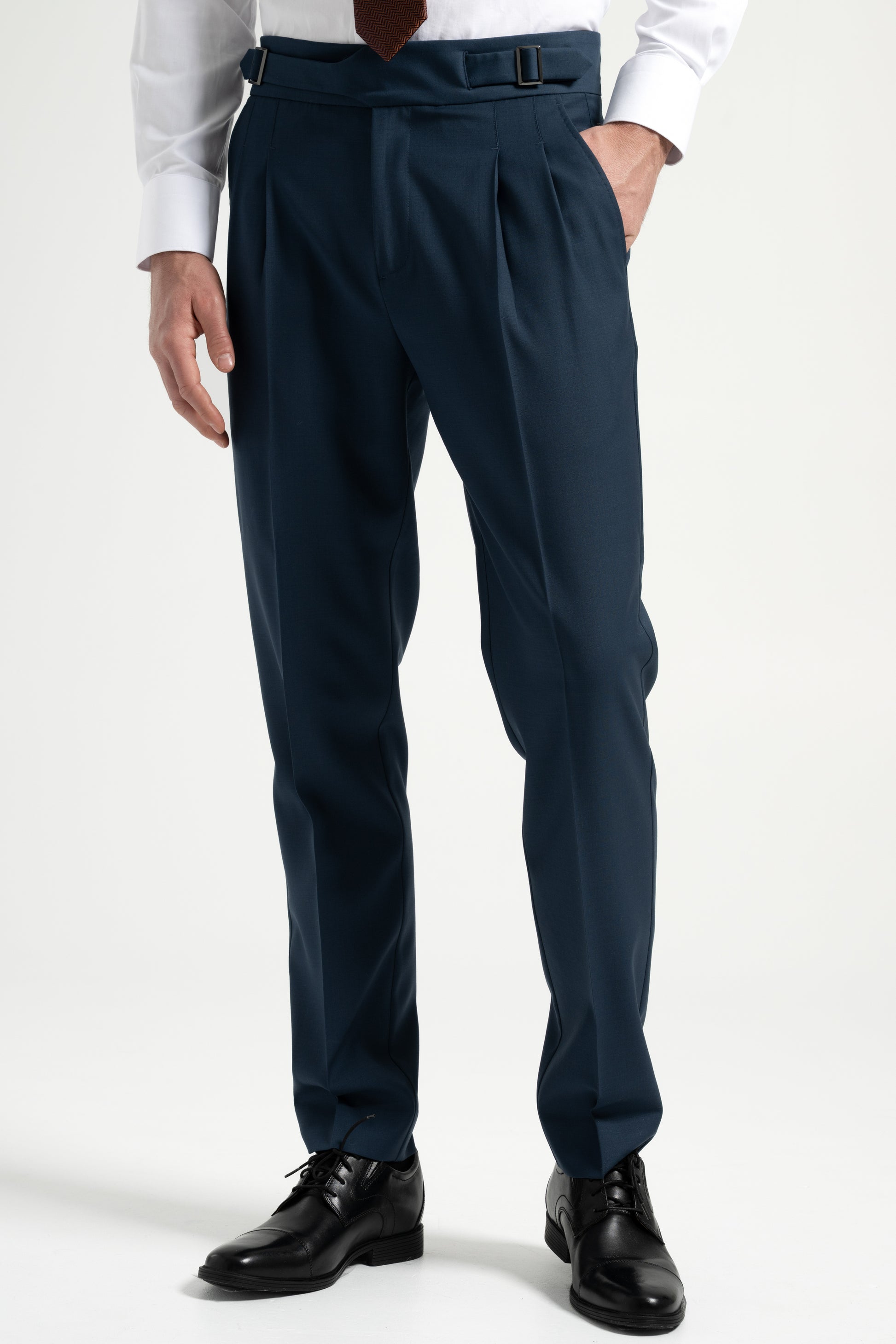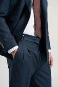 Crafted from 100% wool, these double-pleat trousers feature a refined pleated design and an adjustable waistband for a perfect tailored fit. The soft and breathable wool fabric provides comfort while maintaining a structured, elegant silhouette, ideal for business and formal occasions.